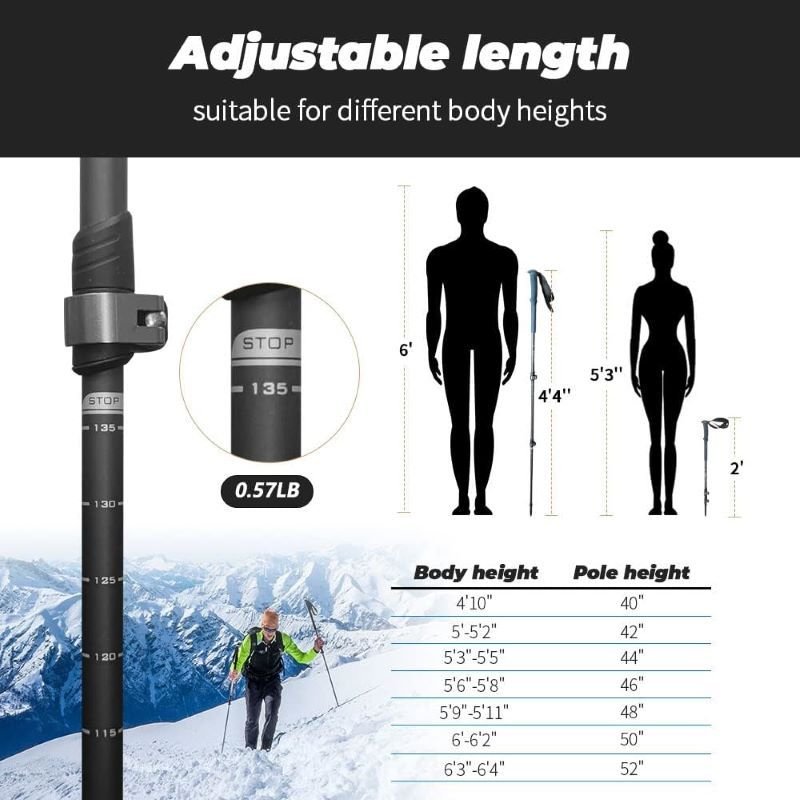 4.Quick lock will support you during all your adventures, it is easy to use and reliable for holding the pole at the desired height ranging from 26”- 54”.
