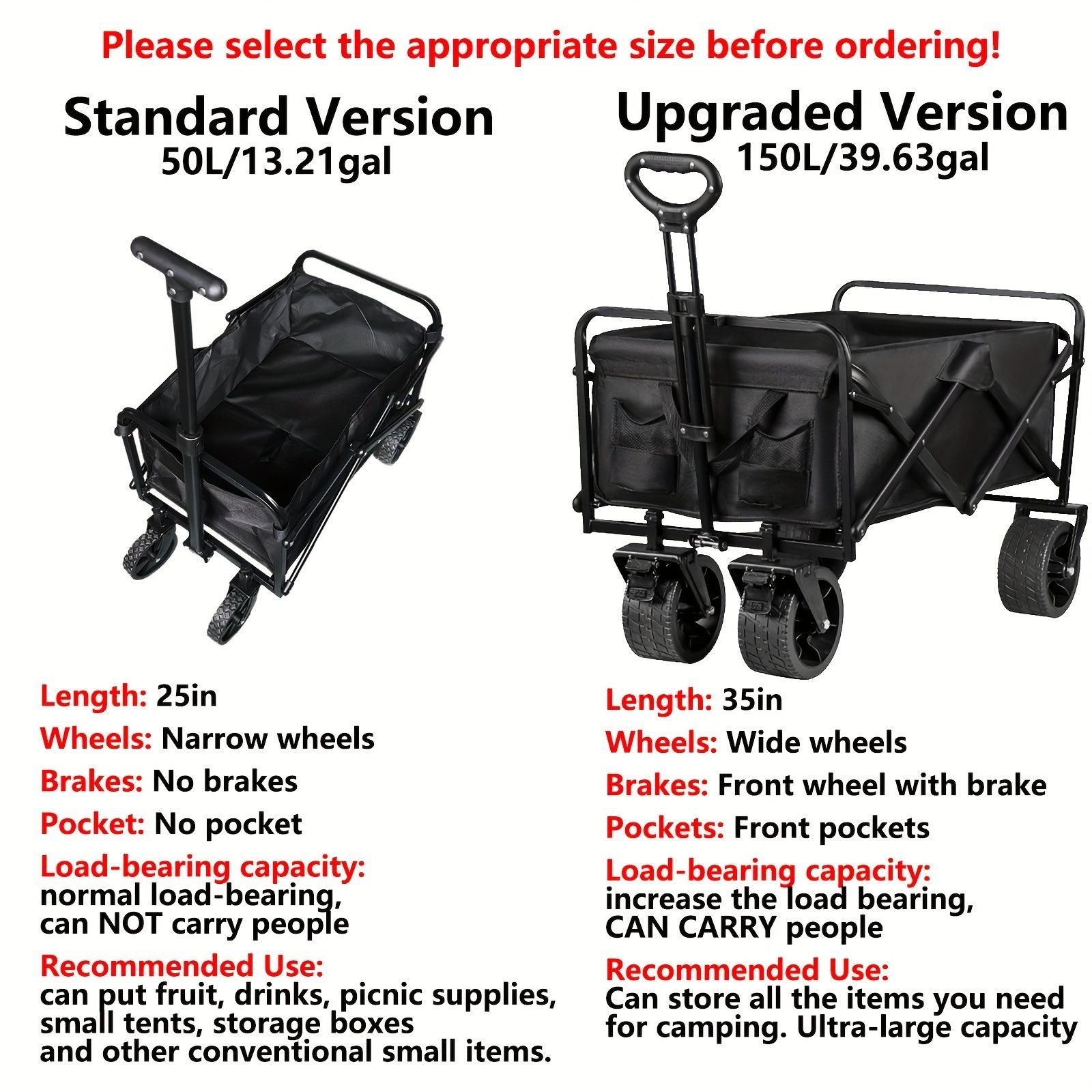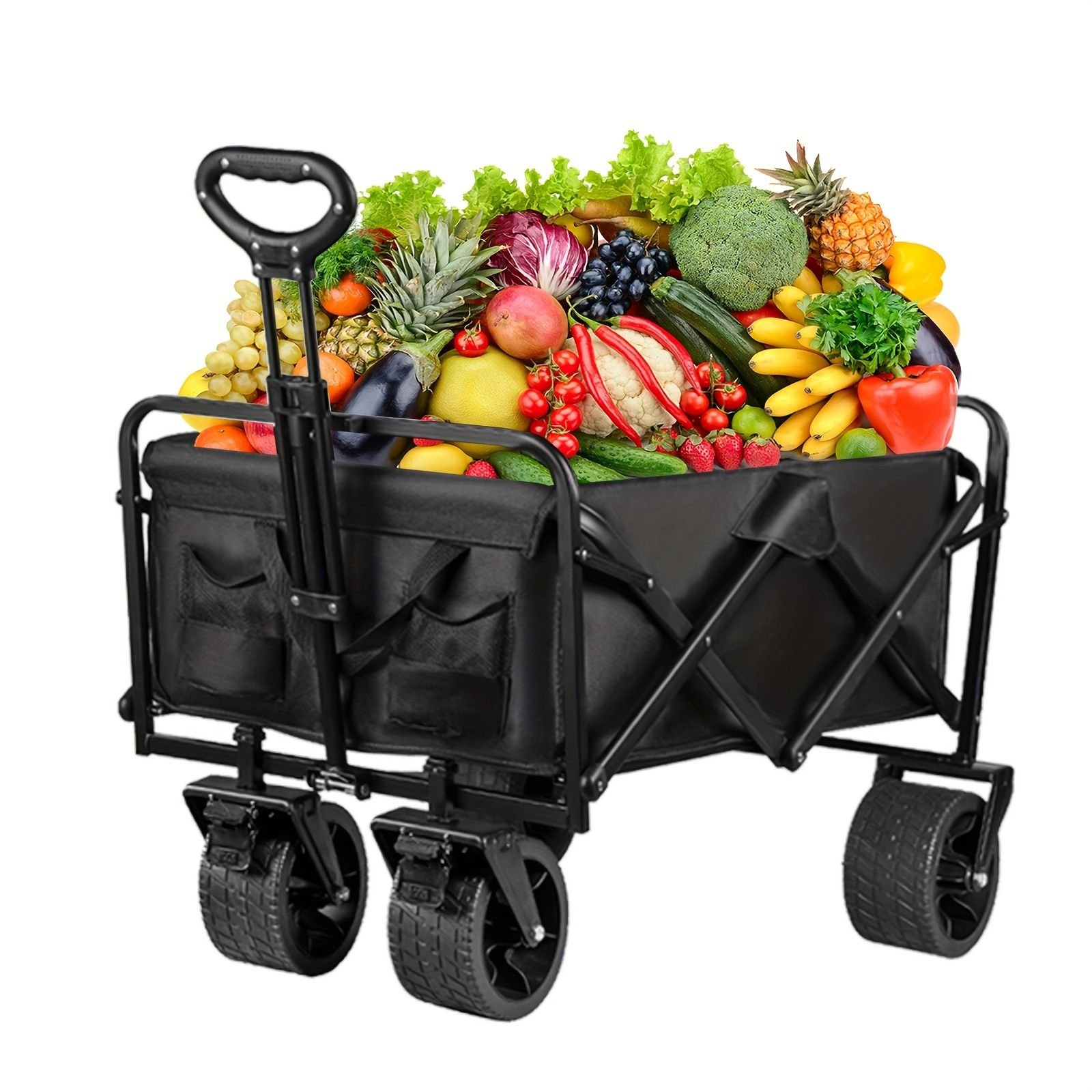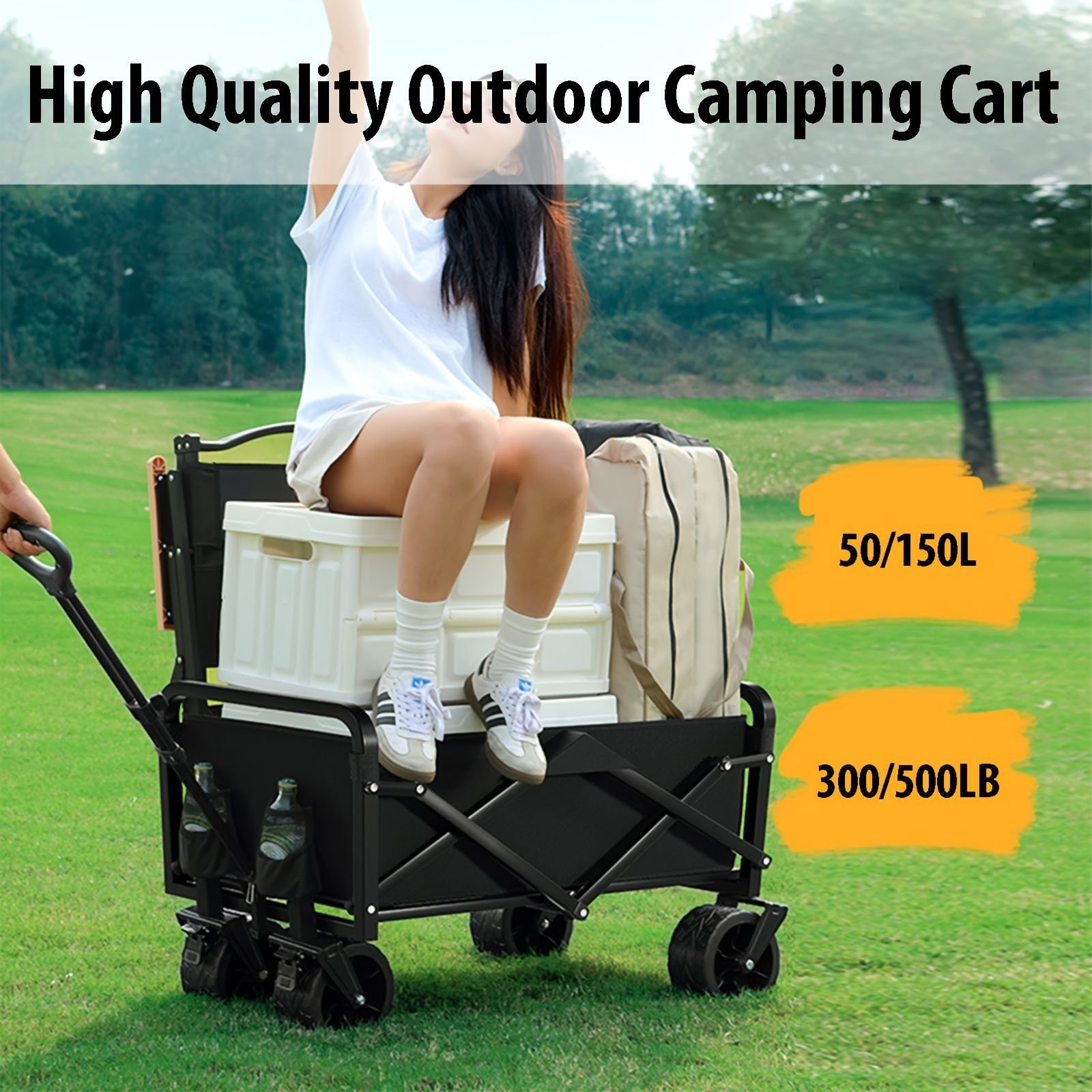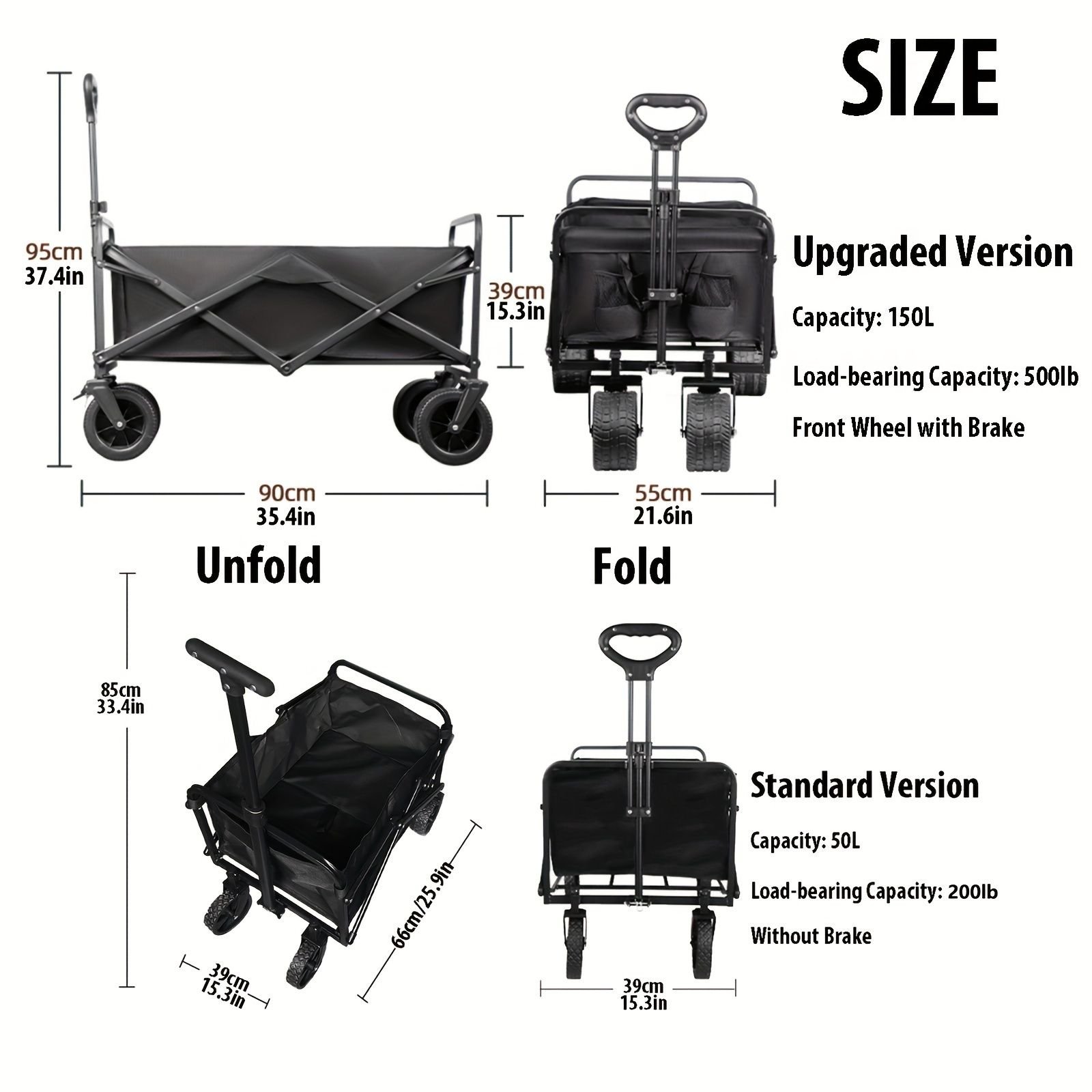 Home > 1pc Collapsible Foldable Wagon Cart Storage Box, 300/500LBS Heavy Duty Utility Garden Cart With All-Terrain Wheels For Beach, Lawn, Sports, Camping