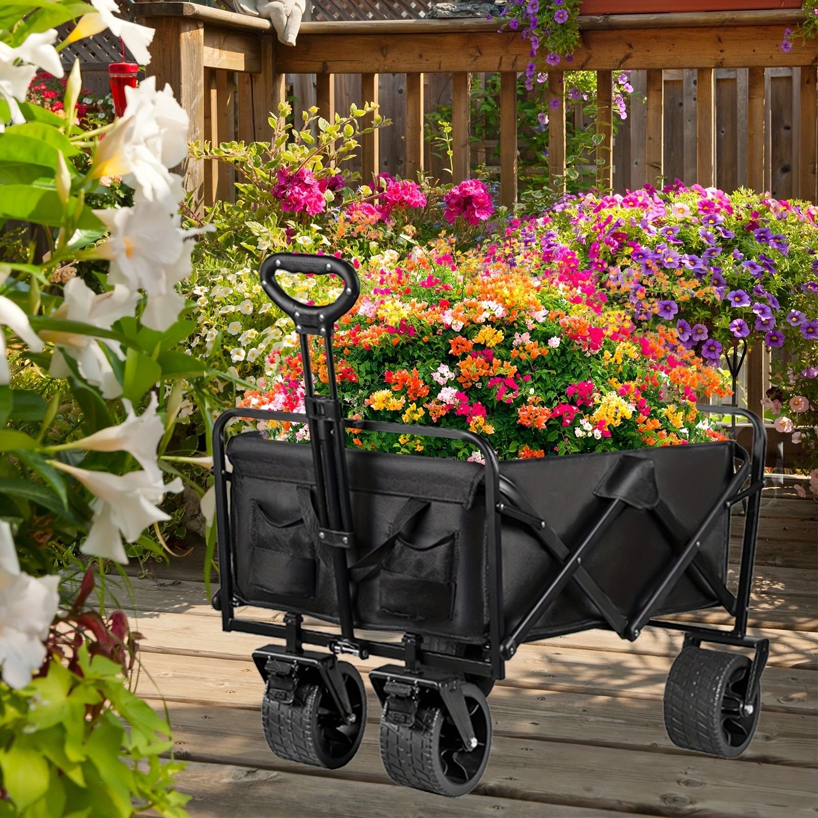 1pc Collapsible Foldable Wagon Cart Storage Box, 300/500LBS Heavy Duty Utility Garden Cart With All-Terrain Wheels For Beach, Lawn, Sports, Camping