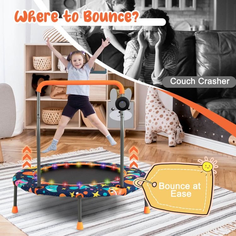 36 Inch Mini Trampoline with Colorful LED Lights and Bluetooth Speaker